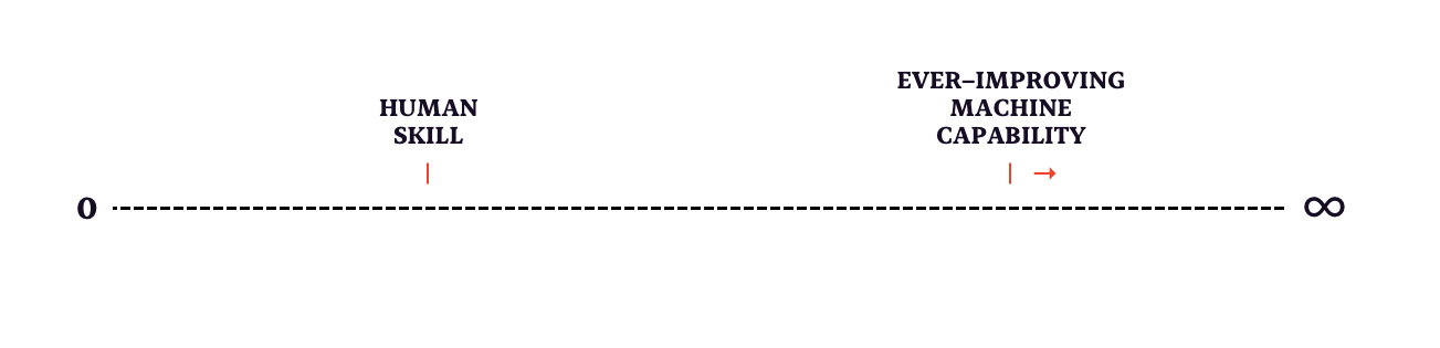 Another way of thinking about it is when we come up with a new skill or a technology, we might slowly improve it, maturing the domain for other humans to participate in it. As part of that onboarding, sets of instructions need to be written. At which point are the domains ready for a machine to excel in them?