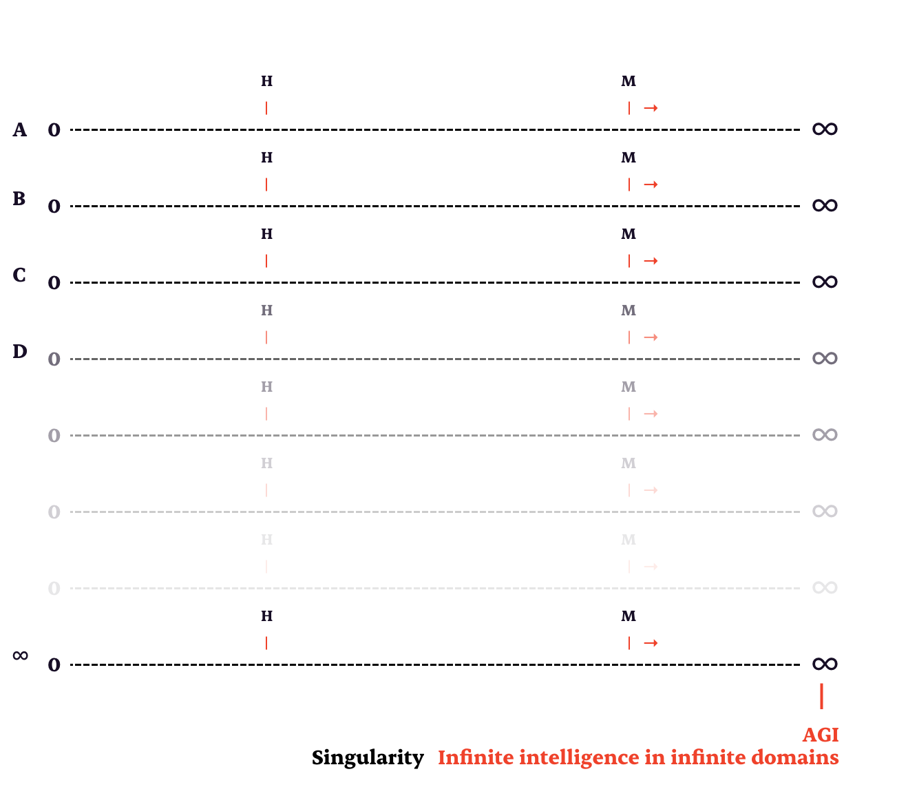 Under this lens, we can position AGI in the bottom right, as holding infinite ability in infinite domains. But we established the fallacies of that view, so that leaves us with a much more current and useful alternative.