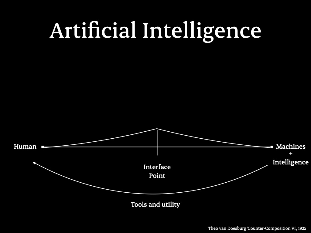 But first, let’s look at the basic unit of our relationship with a machine: a machine on one side, a human on the other, and there’s an interaction point—an interface point—that could be your phone, a website, a kiosk.
