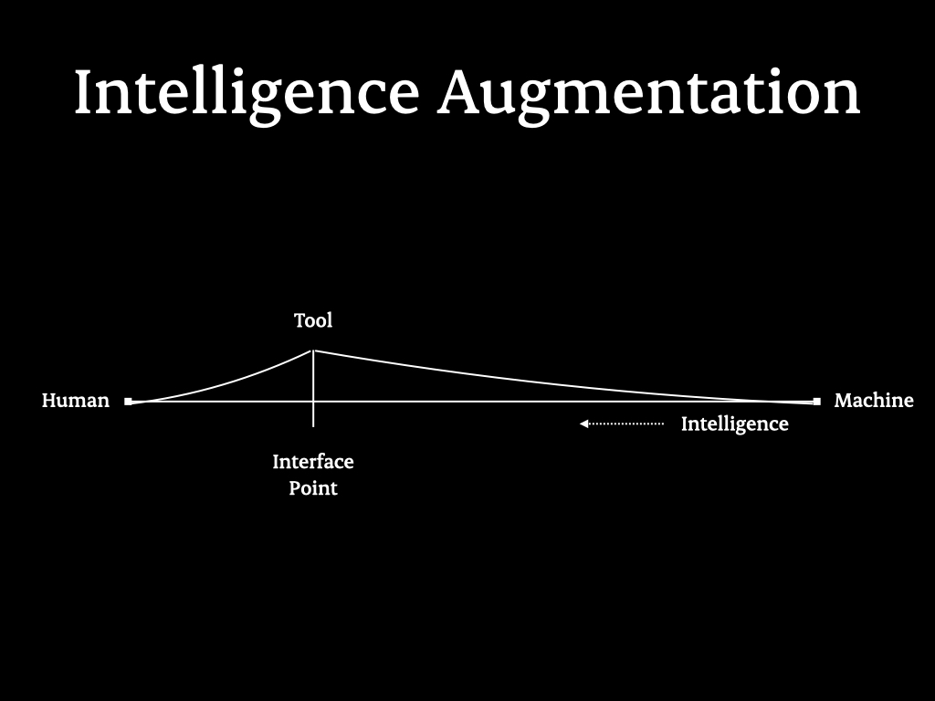 The other school of thought is intelligent augmentation, which posits that tools can be made smarter by integrating intelligence into machines and moving the interface point closer to the human. All it means is that the tools become smarter and more intuitive.
